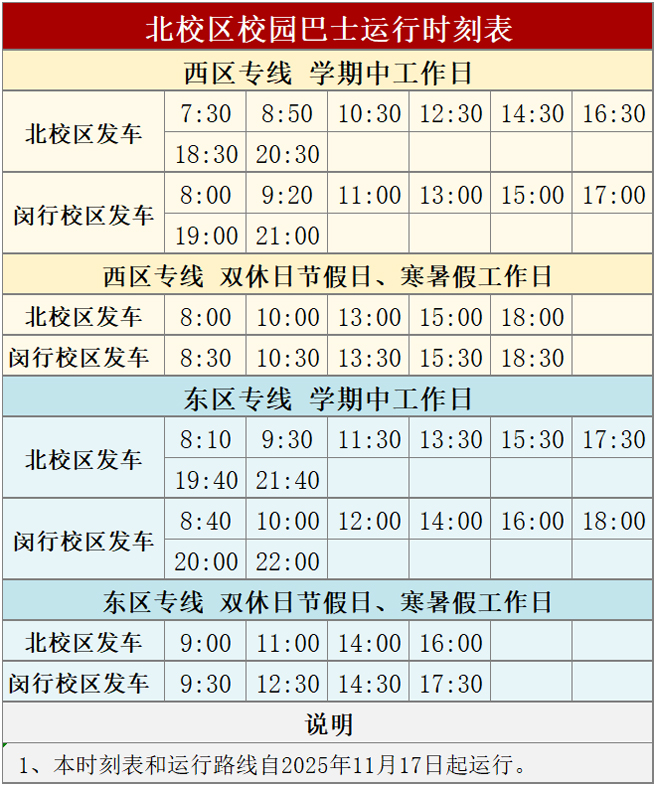 备注:班车服务将根据学校要求调整,请大家及时关注,谢谢!