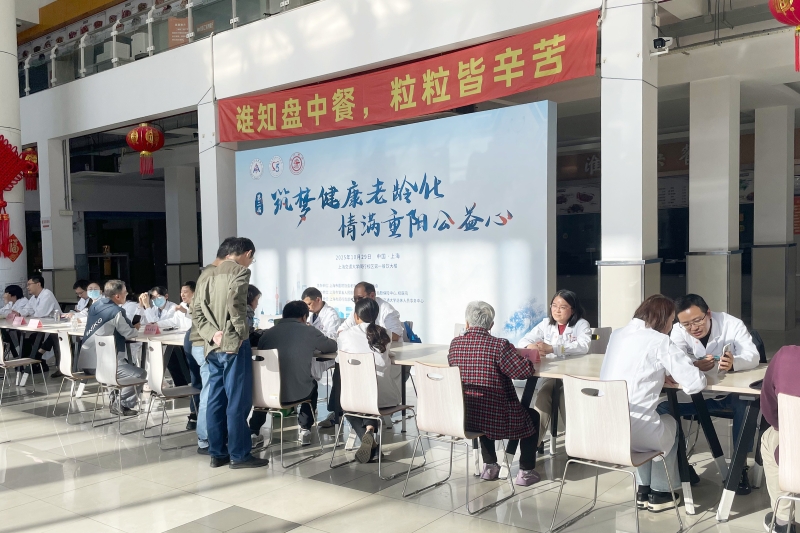为弘扬尊老敬老传统美德,积极响应"健康中国"战略关于加强老年健康服务的号召,重阳节当天,由上海市医院协会老年医疗管理专委会主办,上海市第五人民医院、上海交通大学后勤保障中心(校医院)共同承办的“筑梦健康老龄化情满重阳公益心”上海交大专场医疗咨询公益活动在闵行校区第一餐饮大楼暖心开展。